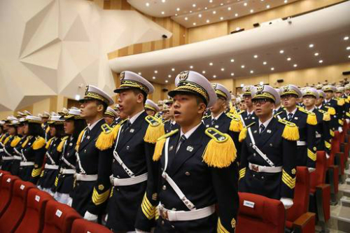 지난달 29일 충남 아산시 경찰대학교 대강당에서 치러진 제36기 경찰대 신입생 입학식 모습.