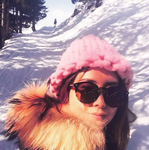 공개된 사진 속 최정윤은 하얀 눈을 배경으로 셀카를 찍고 있다.