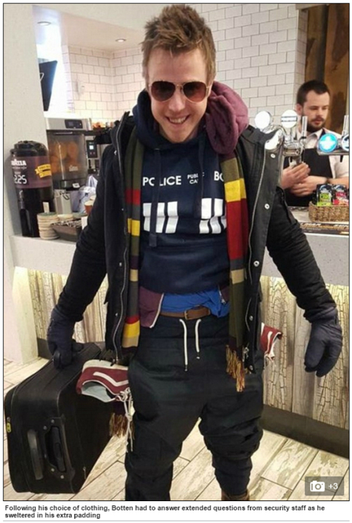 수하물 추가 비용을 줄이려 옷을 모두 껴입고 비행기에 오른 카디프 남성이 화제다.