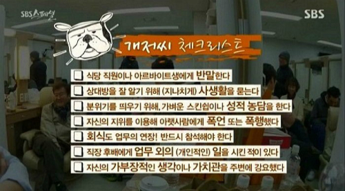 특히 이날 방송에선 본인이 개저씨인지를 확인할 수 있는 체크리스트가 나왔다.
