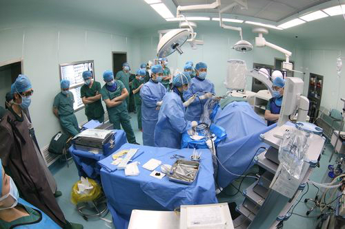| 중국 청도시 하이츠병원에서의 우리들병원 의료진 수술 모습 |