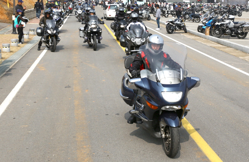 | 지난달 19일 경북 상주시 경천섬 일대에서 열린 ‘BMW 모토라드 시즌 오프닝 투어 2016’에 전국에서 1000여명의 오토바이 동호인이 모여 함께 달리고 있다. 제공 BMW모터라드 |