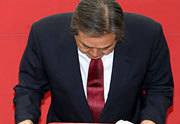 | 4.13 총선 참패로 당 대표직을 사퇴한 새누리당 김무성 대표가 14일 오전 국회에서 열린 중앙선대위 해단식을 마치고 국회 현관문을 나서고 있다. 이재문 기자 |
