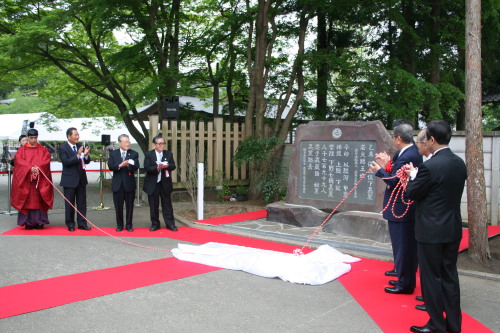 | 일본 내 고구려 마을 ‘고마군’ 창설 1300주년 기념비 제막 행사가 고마약광회 관계자 및 한국, 일본 정부 인사들이 참석한 가운데 23일 일본 사이타마현 고마신사에서 열리고 있다. |