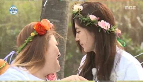 '나 혼자 산다' 이국주가 한채아와 화관을 같이 썼다.