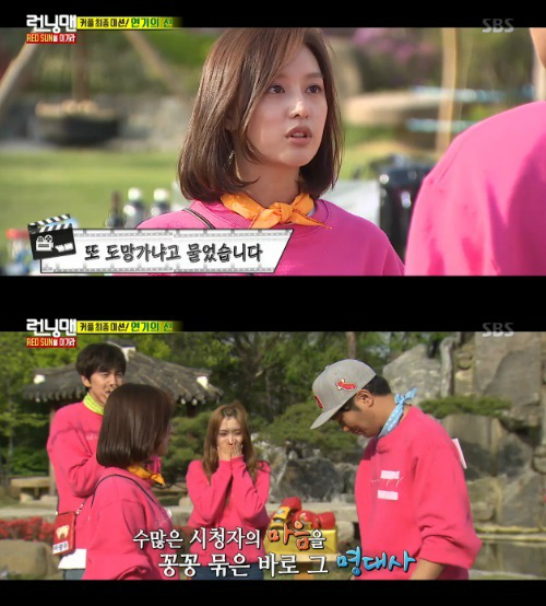 '런닝맨'에 출연한 배우 김지원이 MC 유재석에게 불꽃 따귀를 날렸다.