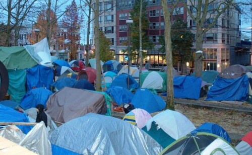 | 위 사진은 캠핑 촌이 아닌 노숙자 텐트다. (사진= 비즈니스저널 캡처) |