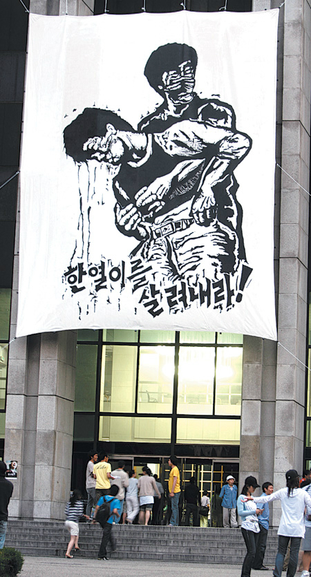 이한열군의 사진은 최병수 작가에 의해 거대한 걸개그림으로 제작돼 6월 11일 연세대 도서관에 걸렸으며 6월항장의 상징으로 됐다.