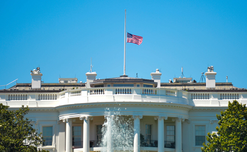 | 백악관 조기 게양 미국 대통령 관저이자 집무실인 백악관에 13일(현지시간) 플로리다주 올랜도 총기 참사를 애도하는 조기가 걸려있다. 워싱턴=신화연합뉴스 |
