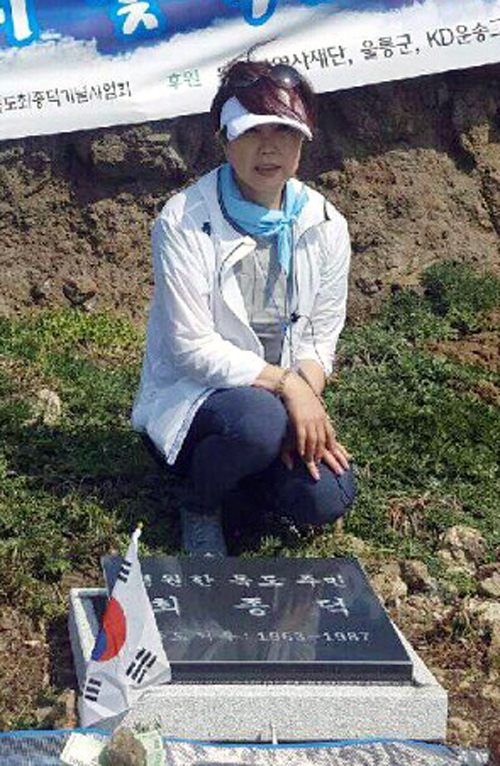 독도 1호 주민 고 최종덕씨 기념석 입력 : 2016-06-13 19:47:06 수정 : 2016-06-13 22:36:48 구글 네이버 유튜브 13일 경북 울릉군 독도 서도 옛 문어건조장에 독도 1호 주민인 고 최종덕씨 기념석이 설치됐다. 최씨의 딸인 은채씨가 ‘영원한 독도 주민 최종덕, 독도 거주:1963∼1987’이라는 글귀가 새겨진 기념석 뒤에 앉아 아버지를 기리고 있다. <연합>연합> Copyright ⓒ 세계일보. 무단 전재 및 재배포 금지 연합