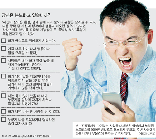 건강보험심사평가원 통계자료에 따르면 분노조절장애 증상으로 병원을 찾은 환자는 2009년 3720명에서 2013년 4934명으로 늘었다. 하지만 ‘화를 주체할 수 없다’는 이유로 병원을 찾은 환자 가운데 질병으로 구분할 수 있을 정도의 분노조절장애가 있는 경우는 1% 미만에 불과하다.