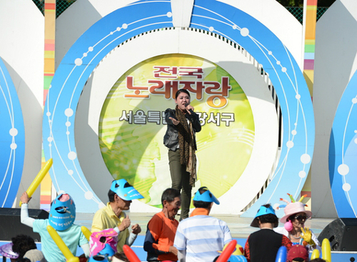 | KBS1 ‘전국노래자랑’에서 한 일반인 출연자가 열창하고 있는 모습. 1972년 처음 방송된 전국노래자랑은 40여년이 지난 지금도 참가 열기가 식지 않고 있다. KBS 제공 |
