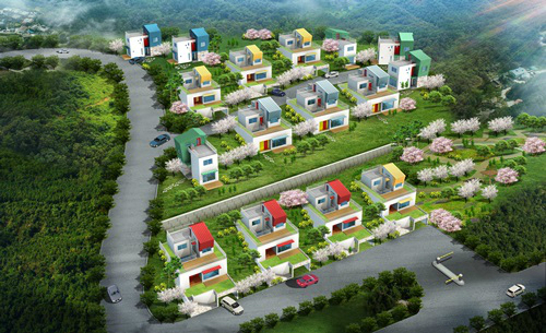 요즘 트랜드인 아이들이 뛰어 놀 수 있고 자연과 더불어 살아가는 타운하우스가 인기를 끌고 있다. 젊은 세대들의 취향에 맞게 중, 소형을 위주로 독립된 단지형 타운하우스를 선호하는데 젊은 층이기에 아이들의 등하교와 출퇴근이 용이하지 않고 편의 시설이 멀리 있어 활동성이 많은 젊은 층의 외면을 받아왔다. “해피 그린 타운하우스”는 자체 방범 시설과 경비실을 두고 있으며 아파트의 장점을 그대로 반영하였다.