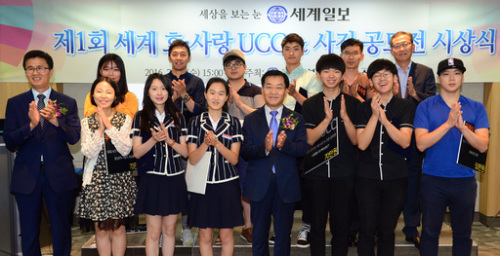 ‘세계 효·사랑 UCC&사진 공모전’ 수상자들 입력 : 2016-07-20 21:00:03 수정 : 2016-07-21 01:25:42 구글 네이버 유튜브 20일 서울 종로구 세계일보 유니홀에서 열린 ‘제1회 세계 효·사랑 UCC & 사진 공모전 시상식’에서 세계일보 차준영 사장(앞줄 왼쪽 다섯번째)과 수상자들이 박수를 치고 있다. 남정탁 기자 Copyright ⓒ 세계일보. 무단 전재 및 재배포 금지 세계일보