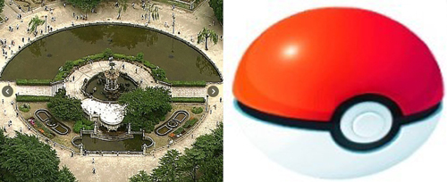 쓰루마공원의 분수탑 주변을 상공에서 보면 포켓몬 고 게임에서 포켓몬을 포획할 때 사용하는 도구인 ‘몬스터 볼’과 모양이 비슷하기 때문이다. 이 ‘성지’에는 포켓몬 고 일본 서비스 시작 이후 첫 일요일인 24일 게임 애호가들이 쇄도했다고 이 신문은 전했다.