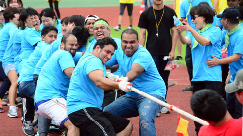 “영차영차∼줄다리기 재밌네요” 입력 : 2016-09-04 22:04:50 수정 : 2016-09-04 22:04:50 구글 네이버 유튜브 서울시가 추석을 앞둔 4일 이주노동자들을 위해 마련한 ‘제6회 서울시 외국인근로자 체육대회’에서 참석자들이 줄다리기를 하고 있다. 체육대회에는 시가 운영하는 6개 외국인근로자센터 이용 노동자와 내국인 등 900여 명이 참여했다. 남정탁 기자 Copyright ⓒ 세계일보. 무단 전재 및 재배포 금지 세계일보