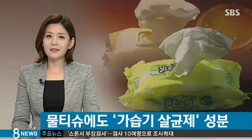 한국소비자원은 가습기살균제 성분이 검출된 물티슈가 조사한 27개의 제품 중 1개 제품이었다고 8일 밝혔다.