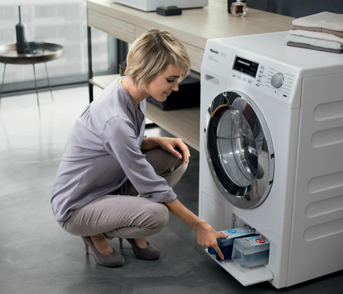 | 세제 사용량을 점검해주고 주문까지 도와주는 밀레의 ‘WT1’ 허니컴 드럼세탁의류건조기. 밀레코리아 제공 |