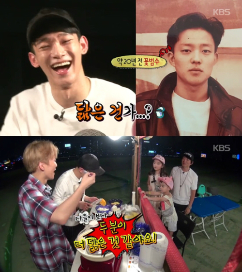 또한 이날 이범수는 첸을 향해 "너 볼때 마다 놀란다"라며 과거의 자신과 닮아 있다고 말했다. 이에 시우민은 첸과 이범수를 향해 “가까이에서 보니 두 분 닮았어요”라며 맞장구 쳤다.