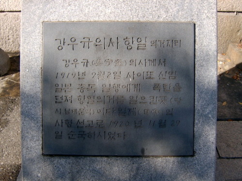 | 구 서울역사 입구에 있는 강우규 의사 의거 기념 표지석. |
