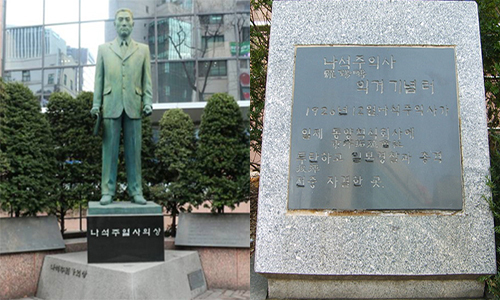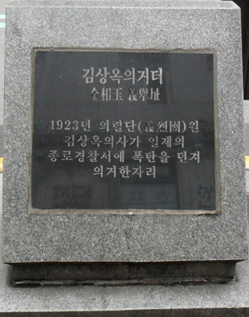 명동역 1번출구 서울애니메이션센터자리에는 김익상 의사의 의거를 기리는 기념표석이 있다.