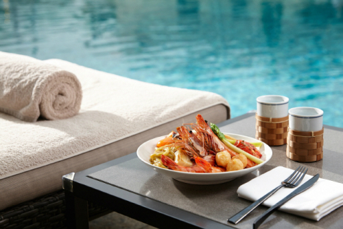 어번 아일랜드 풀 사이드에서는 풍성한 다이닝 서비스도 제공한다. 가을의 인기 메뉴로 구성된 ‘어텀 플레이트’와 따뜻하게 제공되는 사케는 가을 밤의 낭만을 배가한다. 어텀 플레이트는 새우, 대게, 메로구이, 수제 어묵 등으로 구성된 모둠 해산물과 카레 우동이 포함되며, 따뜻한 사케 2잔이 함께 제공된다.