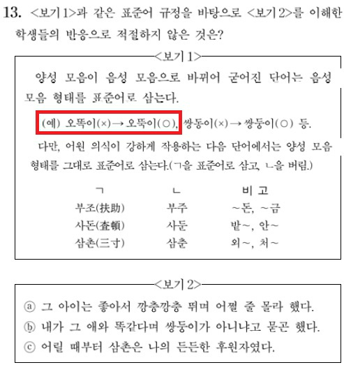 | 부사 '오뚝'이 언급된 2006년 대학수능 언어영역 예문. |