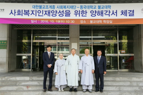 조계종 사회복지재단은 지난 19일 오전 서울 중구 동국대학교 법학관 불교대학(원)장실에서 동국대 불교대학(원)과 ‘사회복지인재양성을 위한 업무 협약’을 체결했다.