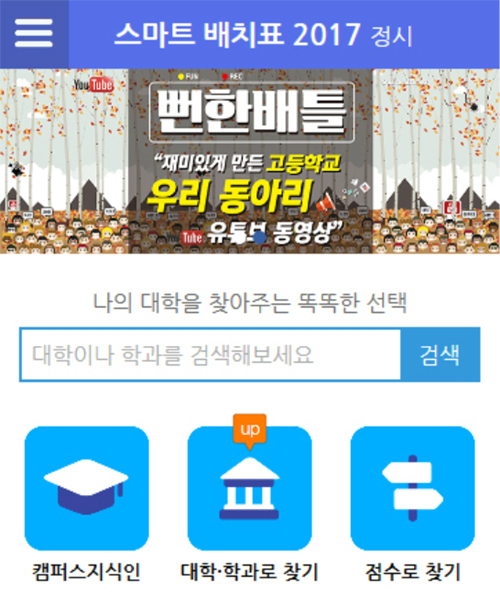 수험생 스스로 대학의 학과와 직업 정보를 탐색하면서 대입을 준비할 수 있는 대입정보포털 스마트배치표가 2017학년도 정시모집 서비스를 오픈했다.