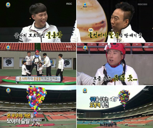 또한 기구를 타고 공중을 뜨는 장면에서는 "온 우주의 기운을 모아서 출발" "상공을 수놓는 오방색 풍선" 등의 자막이 실려 웃음을 자아냈다.