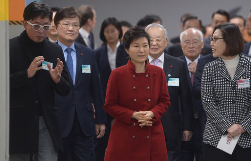 박 대통령과 차은택 입력 : 2016-10-30 18:46:49 수정 : 2016-10-30 18:46:49 구글 네이버 유튜브 박근혜 대통령이 지난해 12월29일 한국관광공사 서울사옥에서 열린 문화창조벤처단지 개소식을 마치고 강명신 문화창조융합센터장(오른쪽)의 안내로 입주 벤처기업을 방문하고 있다. 왼쪽에 흰색 뿔테안경을 쓴 사람이 이번 최순실 게이트의 핵심인물 중 하나인 영상감독 차은택씨. 청와대사진기자단 Copyright ⓒ 세계일보. 무단 전재 및 재배포 금지 세계일보 홍주형