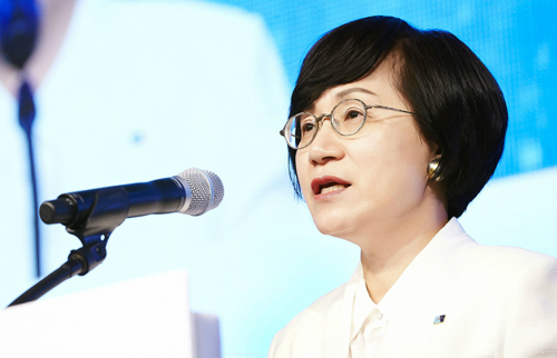 | IBK기업은행 창립 55주년 기념식에서 기념사를 하고 있는 권선주 기업은행장. |