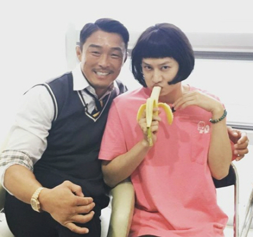 공개된 사진 속 그는 코믹한 분장을 하고 추성훈과 다정한 포즈를 취하고 있다.