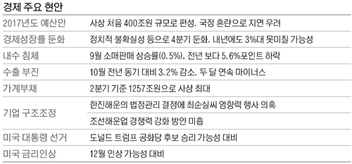 미국 대선에 이어 12월 미국의 금리 인상 가능성과 브렉시트, 중국의 부동산시장 변화 등 대외 불안 요인도 화급한 문제다.