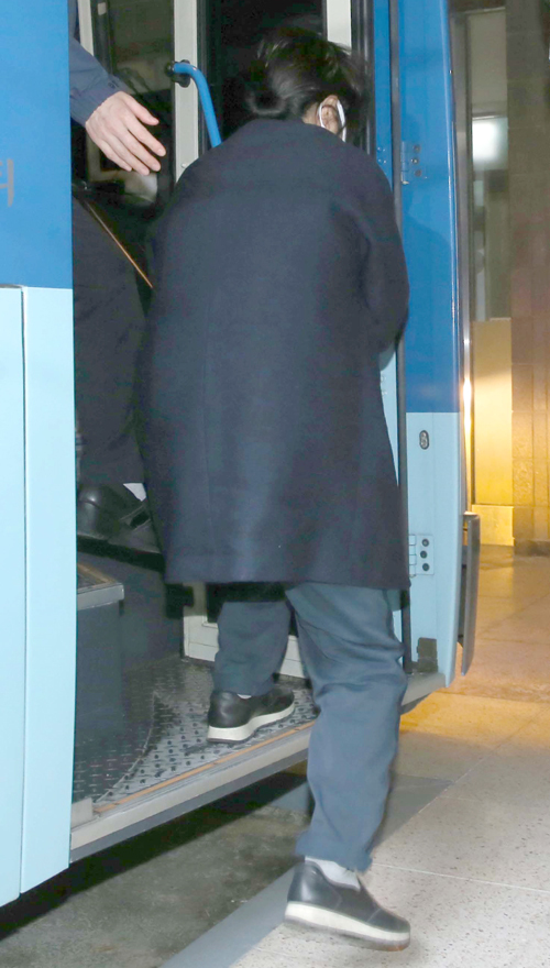 | 최순실씨가 6일 검찰 조사를 받기 위해 호송버스에서 내려 서울중앙지검 조사실로 향하고 있다. 하상윤 기자 |