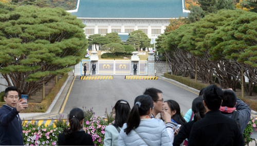 “이곳이 청와대” 입력 : 2016-11-06 18:43:00 수정 : 2016-11-06 18:42:59 구글 네이버 유튜브 최순실 국정농단 파문으로 박근혜 대통령 퇴진 및 하야 요구가 거세지는 가운데 6일 오후 굳게 닫혀 있는 청와대 문 앞에서 외국인 관광객들이 기념촬영을 하고 있다. 서상배 선임기자 Copyright ⓒ 세계일보. 무단 전재 및 재배포 금지 세계일보 이도형