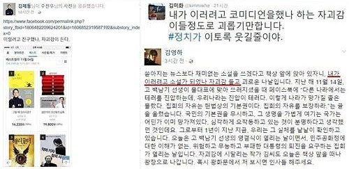 | '내가 이러려고 대통령 했나' 패러디. 김제동·김미화·김영하 SNS 캡처 |