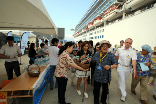 지난해 8월 일본 초호화 크루즈인 ‘닛폰마루’를 타고 온 일본인 관광객들이 제주항에 내리고 있다.