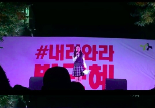 대구의 한 여고생이 ‘최순실 국정농단 사태’에 대해 자유발언을 하며 2차 집회 참석을 독려했다.