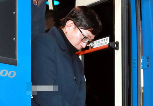 | 최순실씨의 최측근이자 ‘문화계 비선실세’로 지목된 차은택 전 창조경제추진단장이 9일 서울중앙지검에 도착해 호송차에서 내리고 있다. 이재문 기자 |