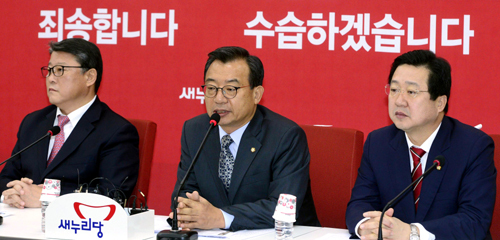 친박계는 10일 비박계의 박 대통령 탈당 요구를 문제 삼으며 반격에 나섰다. 조원진 최고위원은 이날 최고위원회의에서 박 대통령 탈당을 촉구한 비박계 좌장 김무성 전 대표를 향해 “시기뿐 아니라 당을 아끼는 여러 사람들의 걱정을 배로 증가시키는 발언”이라고 비판했다. 발언을 조심해 달라고도 했다. 이장우·유창수 최고위원도 당내 정쟁 자제를 요구했다. 비박계 요구를 받아들이는 식으로 박 대통령 탈당이 이뤄진다면 친박계의 운신폭이 극도로 제한될 것이라는 판단에 역공에 나선 것으로 풀이된다.