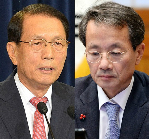 | 김기춘 전 청와대 비서실장(왼쪽)과 김영한 전 민정수석. |