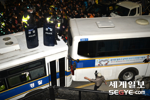 [포토] 경찰 버스 발로 차는 한 시민 입력 : 2016-11-12 22:26:42 수정 : 2016-11-12 22:30:41 구글 네이버 유튜브 '최순실 게이트' 진상규명과 박근혜 대통령 퇴진 촉구 3차 촛불집회'가 열린 12일 밤 서울 종로구 경복궁역에서 한 시민이 경찰 버스를 발로 차고 있다. 한윤종 기자 hyj0709@segye.com Copyright ⓒ 세계일보. 무단 전재 및 재배포 금지 세계닷컴 한윤종
