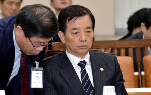 | 한민구 국방부 장관(오른쪽)이 14일 국회에서 열린 국방위원회 전체회의에 참석해 국방부 관계자의 보고를 듣고 있다. 이제원 기자 |