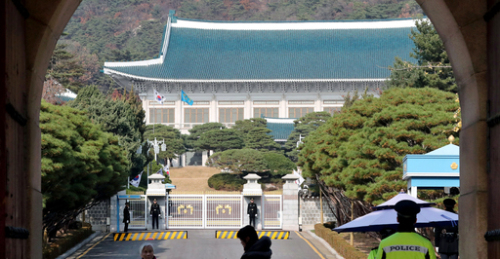 굳게 닫힌 청와대 최순실 국정농단 파문으로 정국이 혼란스러운 16일 오후 경복궁 신무문에서 바라본 청와대 본관 정경. 경찰들이 경계 근무를 서고 있는 가운데 정문이 굳게 닫혀 있다. 청와대사진기자단 |
