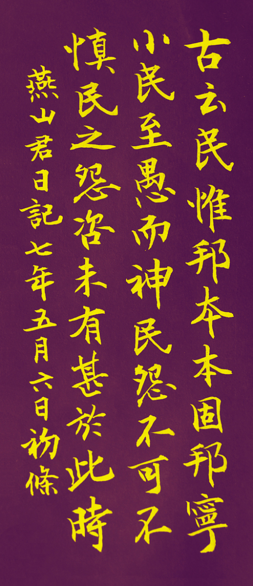 “옛말에, ‘백성은 나라의 근본이니 근본이 튼튼해야만 나라가 편안하다 하였습니다. 백성이란 지극히 어리석지만 신령한 존재이니, 백성의 원망을 조심하지 않을 수 없사온데, 백성의 원망이 이때보다 심한 적이 없었습니다.” (古云 民惟邦本 本固邦寧. 小民至愚而神 民怨不可不愼. 民之怨咨 未有甚於此時)