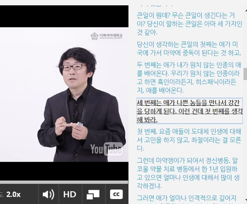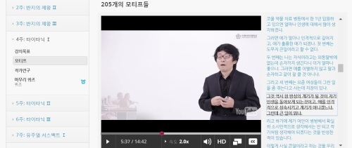 | 논란이 된 발언이 나온 '영화스토리텔링의 이해' 강의 화면 캡쳐. |