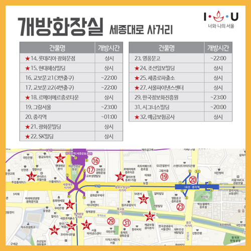 집회장소 주변 개방화장실도 50곳을 소개했다.