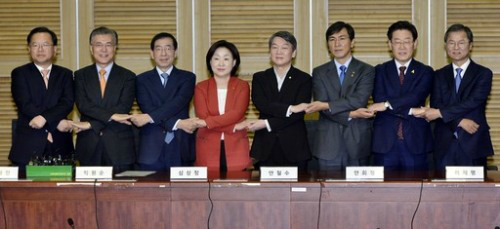 더불어민주당 문재인 전 대표와 국민의당 안철수 전 상임대표, 박원순 서울시장, 안희정 충남지사, 김부겸 의원, 이재명 성남시장, 국민의당 천정배 전 대표, 정의당 심상정 상임대표 등 8명은 국회에서 ‘비상시국 정치회의’를 열어 이같이 합의했다. 앞서 야 3당도 이날 검찰 중간 수사결과 발표와 관련해 “탄핵 요건이 갖춰졌다”고 평가해 향후 야권을 중심으로 박 대통령 탄핵 추진 논의가 급물살을 탈 전망이다.