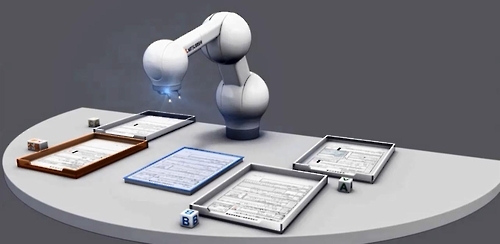 | 인공지능(AI)이 서류를 읽고 로봇팔로 분류하는, 일본 미쓰비시전기가 개발중인 시스템의 이미지. |